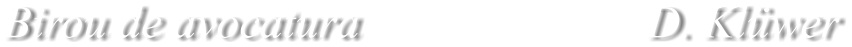 Bine ati venit pe pagina mea! Va invit sa va creati o impresie personala despre mine ca avocata si cum as putea sa va ajut sa va rezolvati problemele juridice in Germania precum si in Romania. Ofer consultanta si reprezentare juridica pentru persoane fizice precum si juridice. Telul meu superior este sa gasesc o solutie individuala creata special pentru cazul dumneavoastra si sa va ajut sa gasiti si sa mergeti pe drumul care va va aduce la rezultatul final dorit. In mod special prelucrez cazuri de drept penal, dreptul familiei, dreptul de inchirieri, dreptul muncii. Dar ma preocup si de dreptul social, dreptul de circulatie, dreptul strainilor si alte domenii juridice. In cadrul cazurilor caut in primul rind o solutie juridica speciala si iau in considerare si problemele economice, politice precum si interculturale. Consultanta si reprezentarea prin mine este posibila oriunde in Germania  in mod special in orasele  bavareze din apropiere de orasele Erlangen, Fürth, Nürnberg, Bamberg, Forchheim etc. Pe linga calitatea mea ca avocata va ofer cunostinte de limbi straine si un domeniu profesional international. Va consult in limba romana, germana, italiana precum si engleza. Cooperez cu avocati in Romania asa ca pot sa sustin si in Romania drepturile clientilor germani sau romani cu domiciliul in Germania fara sa existe o dificultate de limba. Increderea si drepturile dumneavoastra sunt motivatia mea principala! © Denise Klüwer 2012 Contact Kuttlerstr. 2 91054 Erlangen Tel. +49 (09131) 976477 Tel. +49 (09131) 9085884 Fax  +49 (09131) 9731651 Fax  +49 (09131) 9085883 Mobil +49 (0177) 2169756 eMail cabinet@avocata.eu              Klüwer, Denise                    avocata              domenii speciale       dreptul penal, dreptul familiei,   dreptul de inchirieri, dreptul muncii       limba de corespondenta         germana, romana, italiana                      si engleza Orariu Luni - Joi 08:30 bis 16:00 Uhr Vineri 08:30 bis 13:00 Uhr Termene speciale sunt posibile si in afara orelor de program.